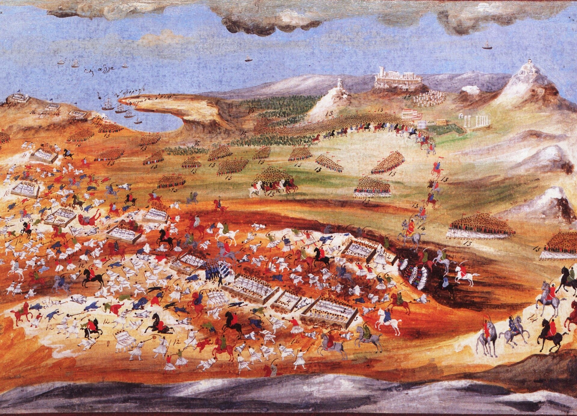 [1] Την τελετή περιγράφει λιτά και ο J.Mährlen στο έργο του Geschichte Griechenlands von der Ankunft König Otto’s in Nauplia bis zu seiner Thronbesteigung (von 6. Februar 1833 bis zum 1.Juni 1835) , Stuttgart 1839, σελ. 591-593, στο Παπαγεωργίου-Βενετά, Πόλεις, σελ. 121, υποσ.115 : «[..]Στο σημείο στο οποίο είχε πληγωθεί δεξιά της οδού Πειραιώς ανηγέρθη μνημείο από κίτρινη αιγινήτικη πέτρα, μια στήλη τετράγωνης διατομής πάνω σε πλατύ βάθρο. [..] Ήδη πριν από μερικές ημέρες μία επιτροπή αξιωματικών του στρατού και κληρικών είχε συνοδεύσει τα οστά του Καραϊσκάκη κατά την μετακομιδή τους από την Σαλαμίνα εις τον Πειραιά, και επίσης η κυβέρνησις είχε συγκεντρώσει τα οστά των πεσόντων Ελλήνων και φιλελλήνων στα γειτονικά πεδία μάχης του Καματερού, του Χαϊδαρίου, της χερσονήσου του Αγίου Κοσμά και τα είχε τοποθετήσει προσωρινά σε φέρετρα στην εκκλησία της Αγίας Ειρήνης […]».